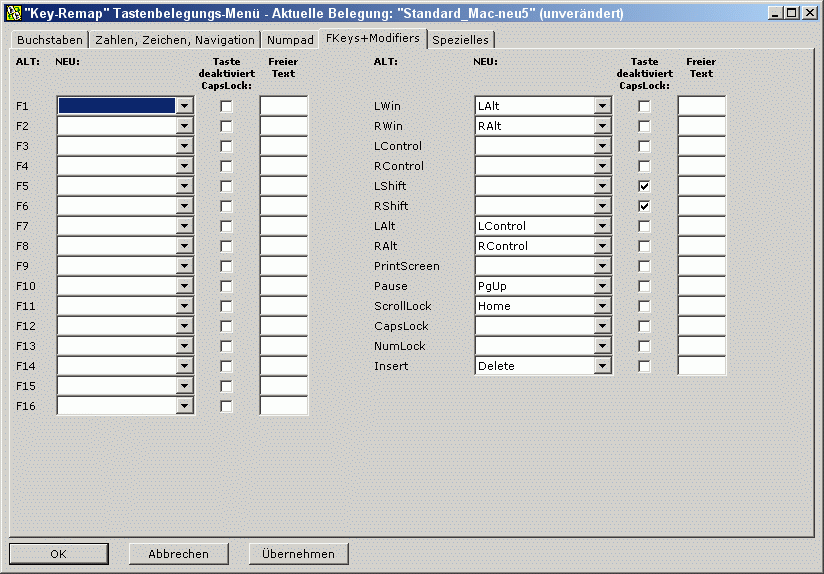 Außerdem kann für jede Taste festgelegt werden, dass sie "CapsLock" deaktiviert. (Praktisch z.B. für die Shift-Tasten - denn wer "Shift" drückt,