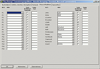 Mit dem Menü "TASTENBELEGUNG - ansehen und ändern" kommt man zur Übersicht aller Tasten.